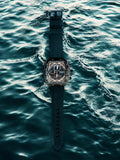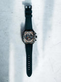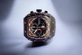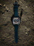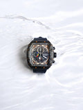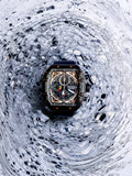 - Sleek square dial with visible mechanics